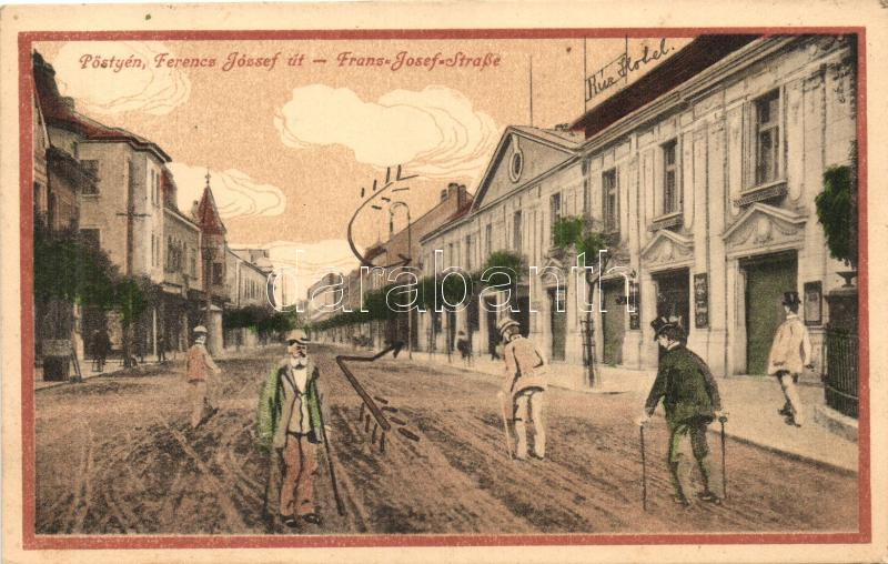 Pöstyén, Piestany; Ferencz József út, Fürdő-szálló / street, spa