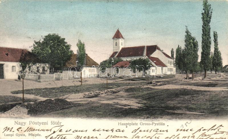 Pöstyén, Piestany; Főtér, templom / main square, church (kis szakadás / small tear)