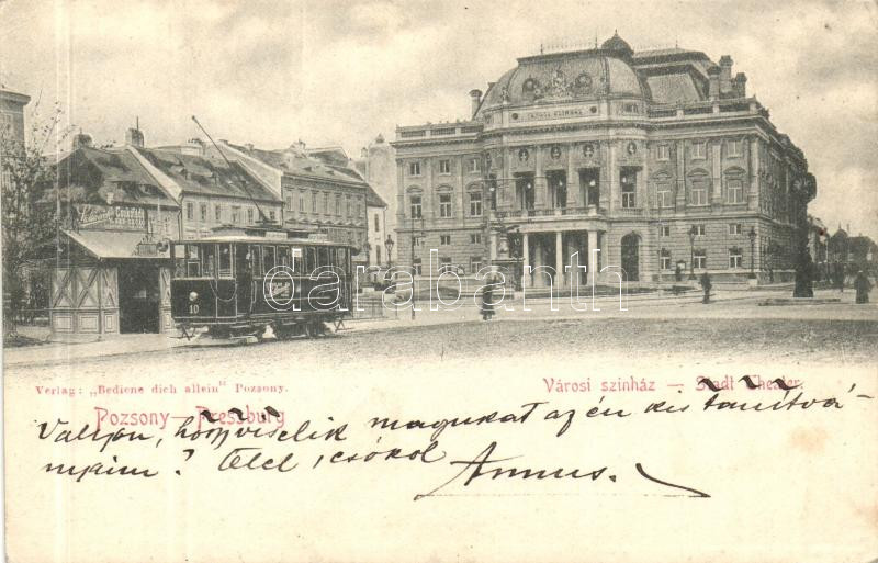 Pozsony, Pressburg, Bratislava; Városi színház, villamos / theatre, tr...