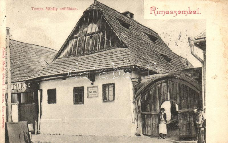 Rimaszombat, Rimavská Sobota; Tompa Mihály szülőháza, kiadja Rábely Miklós / birthplace of Mihály Tompa
