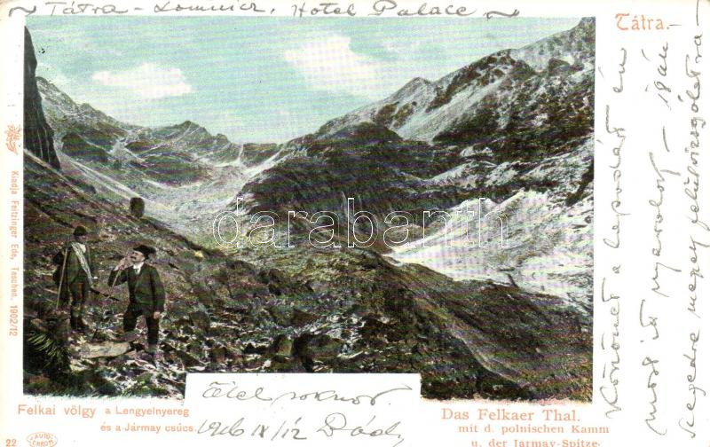 Tátra, Felkai-völgy, a Lengyelnyereg és a Jármay csúcs, kiadja Feitzinger Ede No. 1902/12 / mountain pass, peak (EK)