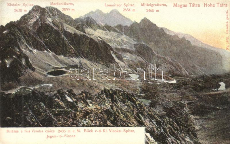 Tátra, Tatra; kilátás a Kis Visoka csúcsról, Jeges tó / view from the peak, lake, Franz Pietschmann Kunstverlag No. 1872