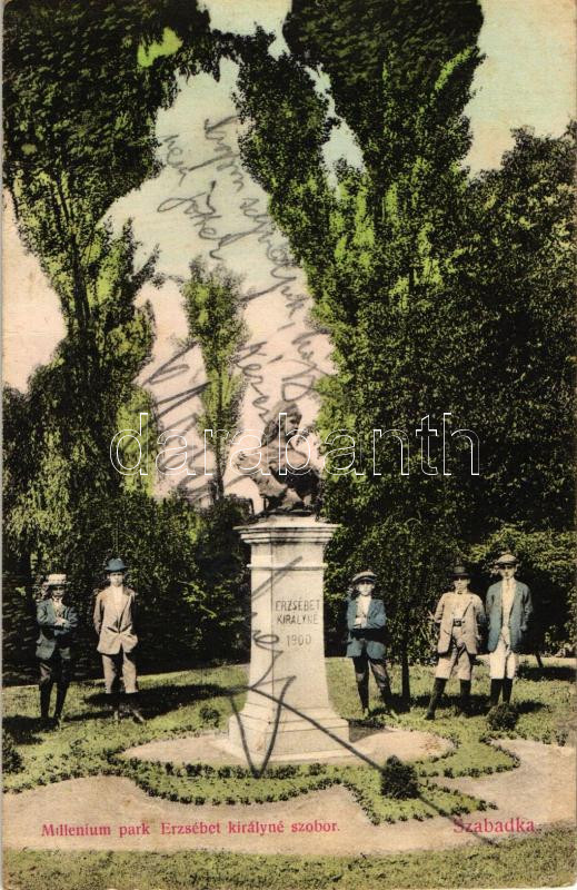 Szabadka, Subotica; Millenium park, Erzsébet királyné szobor / park, s...