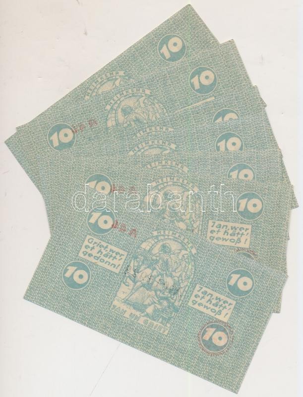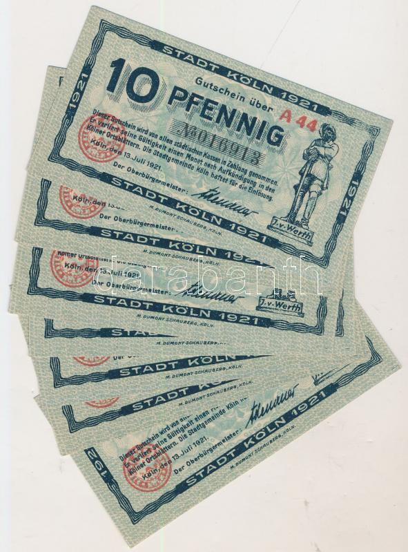 Németország / Weimari Köztársaság / Köln 1921. 10pf (8x) sorszámkövetők és közeli sorszámmal T:I,I- kis sarokkopások Germany / Weimar Republic / Köln 1921. 10 Pfennig (8x) sequential and almost sequential serials C:UNC,AU small corner wears