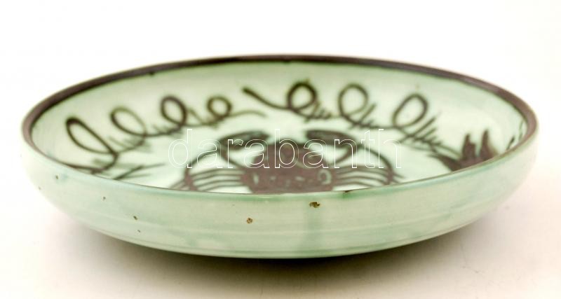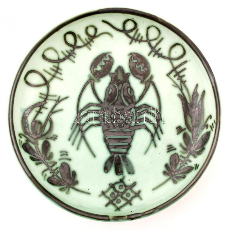 Iparművészeti Vállalatos Gorka rákmotívumos tál, festett mázas kerámia, jelzett, apró kopásnyomokkal, d: 24 cm