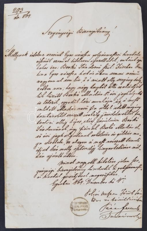 https://www.darabanth.com/en/254-Online-auction/254.0/Other-collectibles/Documents~400027/1864-Szegenysegi-bizonyitvany-kiadatott-Egerben-hivatal-pecsetjevel-ellatva-34x21cm~II1239222