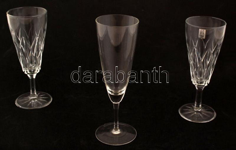 7 db különféle talpas pezsgős pohár, hibátlanok, m:14-17 cm