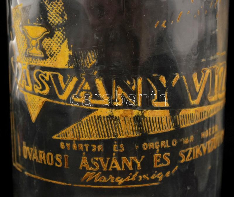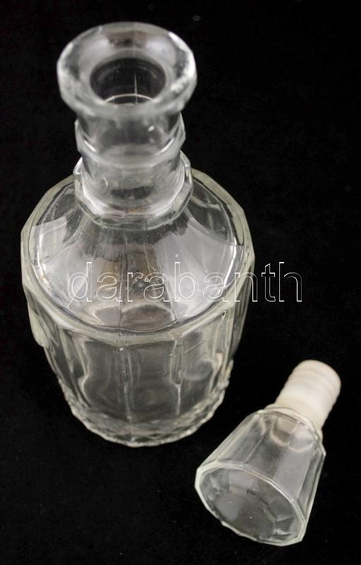 Régi ásványvizes csatos üveg, jelzés nélkül, kopásnyomokkal, m: 32,5 cm + dekoratív, formába öntött brandys üveg, dugóval, jelzés nélkül, apró kopásnyomokkal, m: 25,5 cm