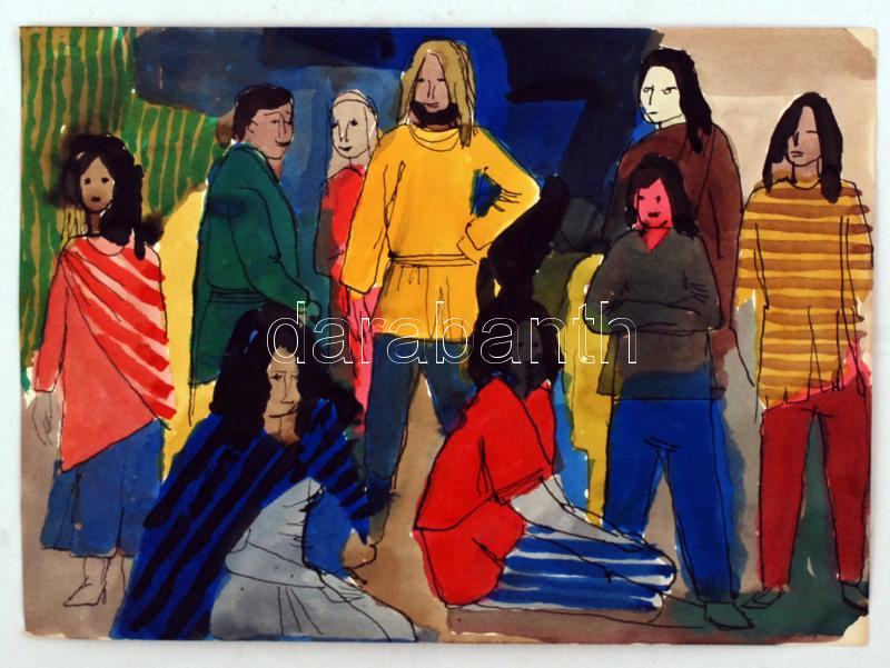 Jelzés nélkül: Csoportban. Vegyes technika, papír, 24x33 cm