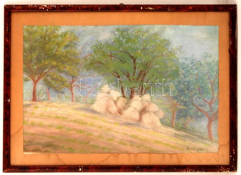 Kádár jelzéssel: Betakarítás után.Pasztell, papír, üvegezett keretben,...