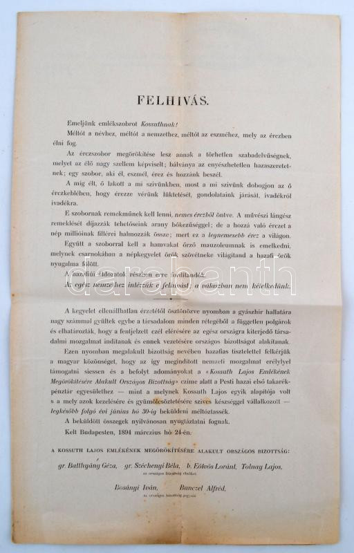 1894 a Kossuth Lajos Emlékének Megörökítésére Alakult Országos Bizotts... https://www.darabanth.com/en/254-Online-auction/254.0/Other-collectibles/Printed-Materials~400010/1894-a-Kossuth-Lajos-Emlekenek-Megorokitesere-Alakult-Orszagos-Bizottsag-adomanyozasra-va~II1236219