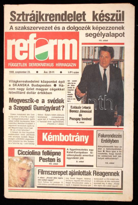 1988 Reform, Független Demokratikus Hírmagazin, 1/P1 szám. Első szám! ...