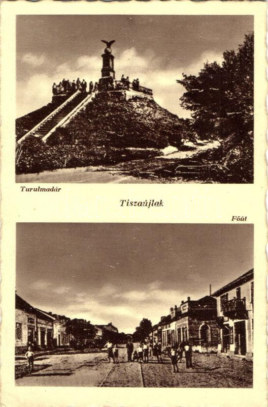 Tiszaújlak, Vilok, Vylok; Turul madár, Fő út; Goldstein könyvkereskedés kiadása / patriotic monument, main street