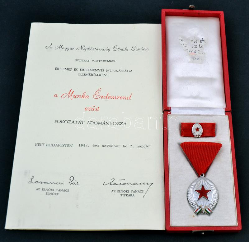 https://www.darabanth.com/en/255-Online-auction/255.0/Numismatics/Faleristics-medals-orders-badges~18/1984-Munka-Erdemrend-ezust-fokozata-zomancozott-es-ezustozott-Br-kituntetes-mellszalago~II1246956