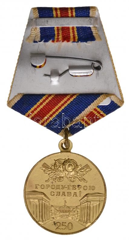 Description: Szovjetunió 1957. "Emlékérem Leningrád alapításának 250. évfordulójára" aranyozott fém kitüntetés mellszalagon (32mm) T:2