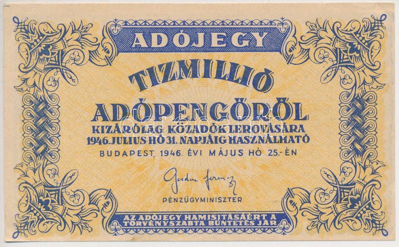 1946. 10.000.000AP vízjeles papíron, fordított címerrel, "amelyeknél",...