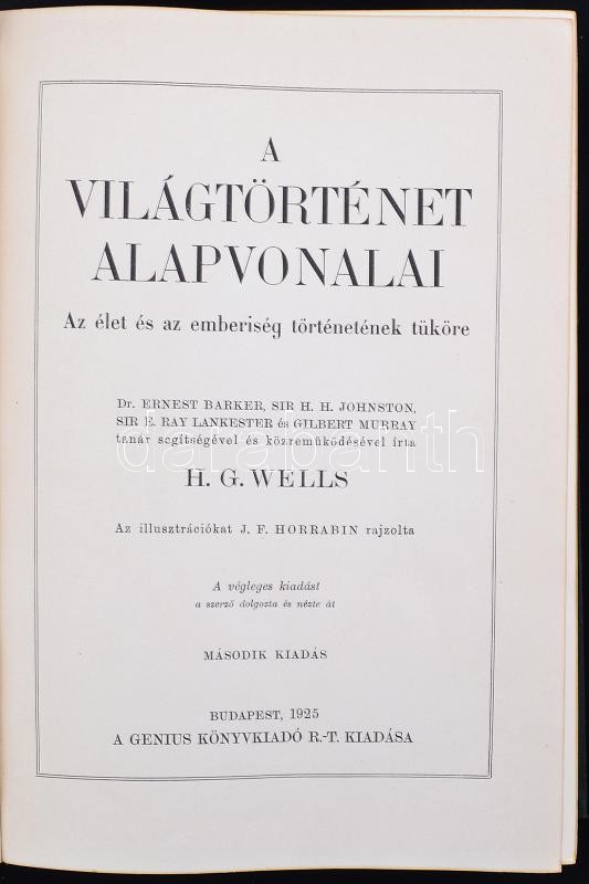 H. G. Wells: A világtörténet alapvonalai. Bp., 1935, Genius Könyvkiadó...