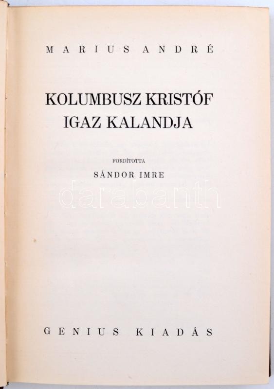 Marius André: Kolumbusz Kristóf igazi kalandja. Ford. Sándor Imre. (Em... https://www.darabanth.com/en/255-Online-auction/255.0/Other-collectibles/Books-History~600032/Marius-Andre-Kolumbusz-Kristof-igazi-kalandja-Ford-Sandor-Imre-Emberek-eletek-szerelmek-~II1244961