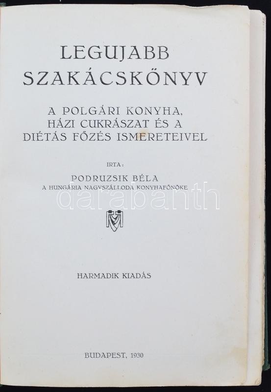 Podruzsik Béla: Legújabb szakácskönyv. A polgári konyha, házi cukrásza... https://www.darabanth.com/en/255-Online-auction/255.0/Other-collectibles/Books-Kitchen-and-garden~600035/Podruzsik-Bela-Legujabb-szakacskonyv-A-polgari-konyha-hazi-cukraszat-es-a-dietas-foze~II1245023