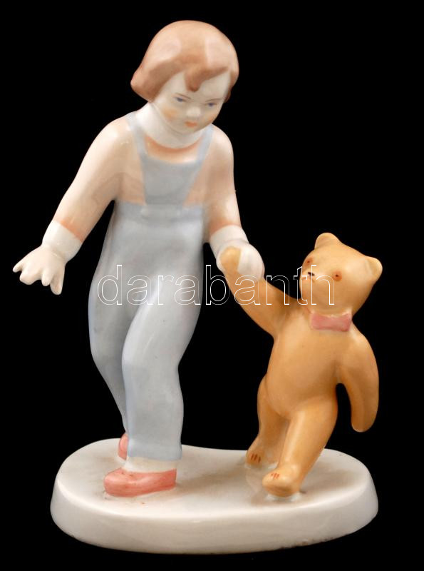 Aquincumi óvódás a macival, kézzel festett, jelzett, hibátlan, m:15 cm