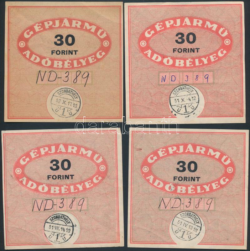 1951 4 db gépjármű adóbélyeg