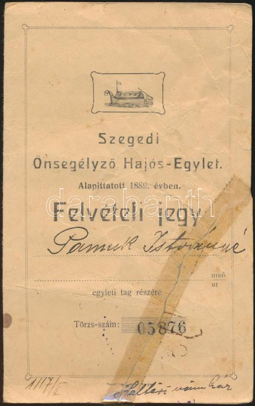 https://www.darabanth.com/en/255-Online-auction/255.0/Other-collectibles/Documents~600015/1924-A-Szegedi-Onsegelyezo-Hajos-Egylet-felveteli-jegye-ragasztott~II1242246