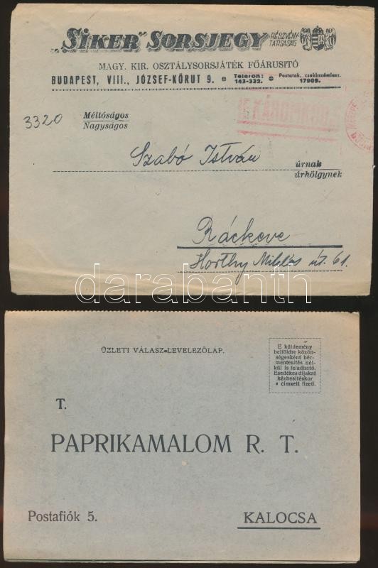 https://www.darabanth.com/en/255-Online-auction/255.0/Other-collectibles/Documents~600015/cca-1920-1940-Magyar-Kiralyi-Posta-disztavirat-2-db-masik-reklamos-nyomtatvannyalSiker-Sorsj~II1240643