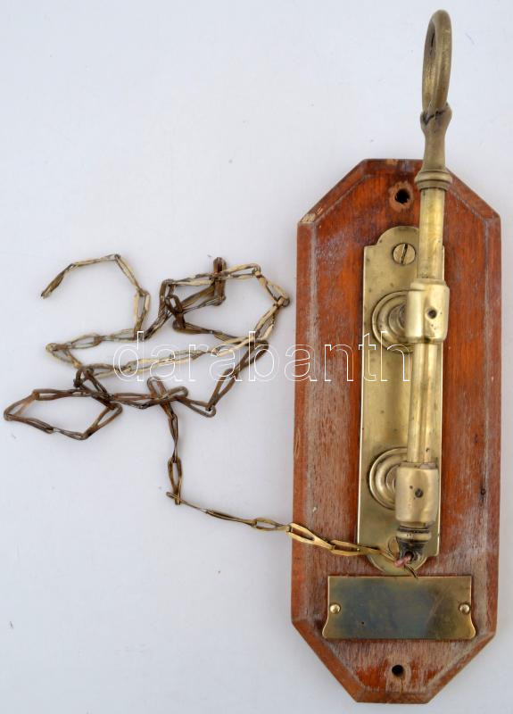Régi réz vécélehúzó, lánccal (h: 115,5 cm), fa talapzaton, jó állapotb...