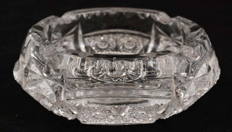 Nagyméretű csiszolt, metszett ólomkristály hamutál, jelzés nélkül, kis csorbákkal, d: 15 cm