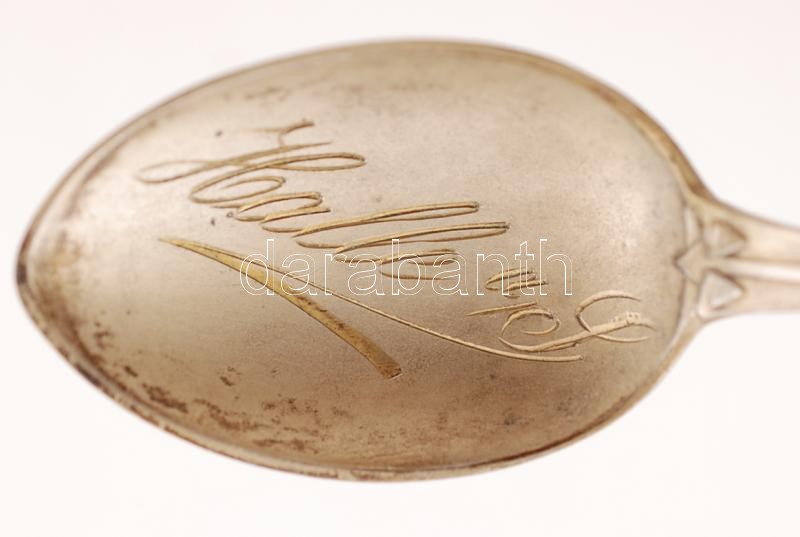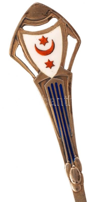 XIX. sz vége: Halle sn der Saale art deco ezüst kanál, zománcozott török címerrel / Vintage silver spoon with Turkish symbol 14,7 g