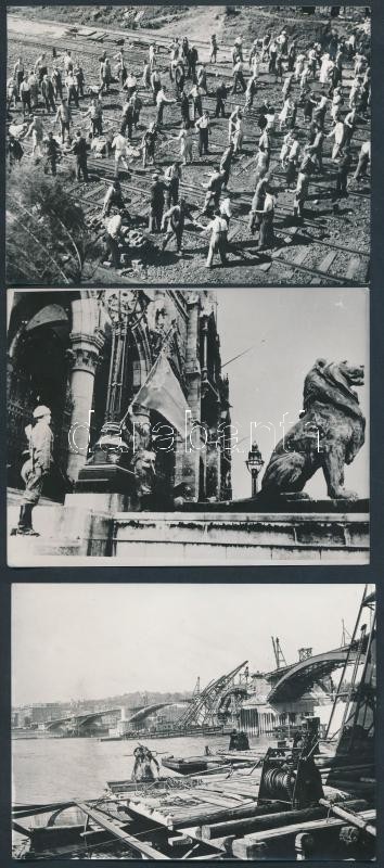 Budapesti életképek 1945-ből, régi fotók modern másolatai, 16 db fotó, 9x12 cm