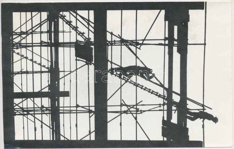 cca 1970 Környei Gyula: Állványozás, feliratozott vintage fotóművészet...