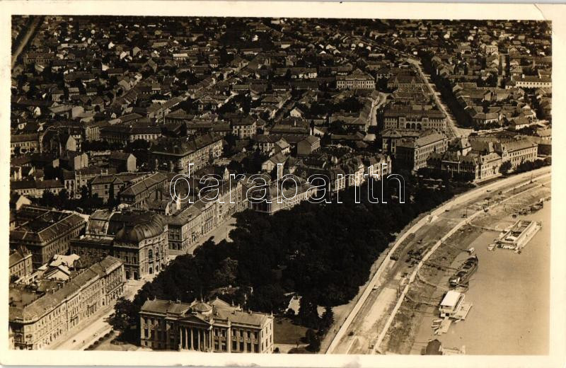 Szeged, Stefánia sétány, Múzeum, Színház, légifelvétel, kiadja a Délvidéki Aero Klub (EK)