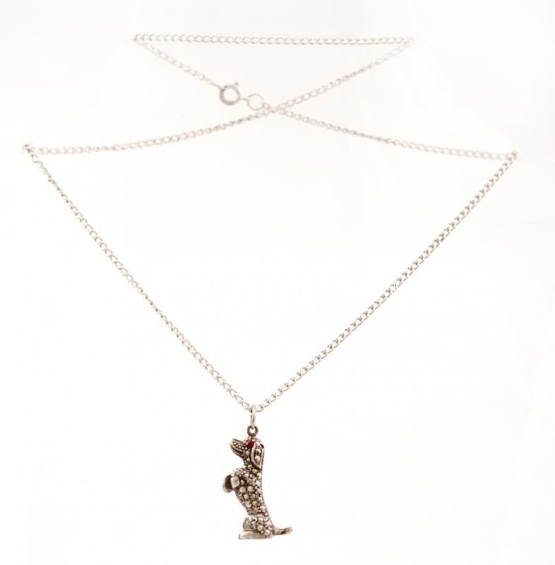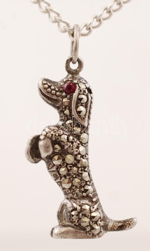 Ezüst nyaklánc kutyus medállal markazittal, Ag., br.: 9,5gr., jelzés nélkül/Silver necklace pendant puppy , Ag, Br. .: 9,5gr., without hallmark