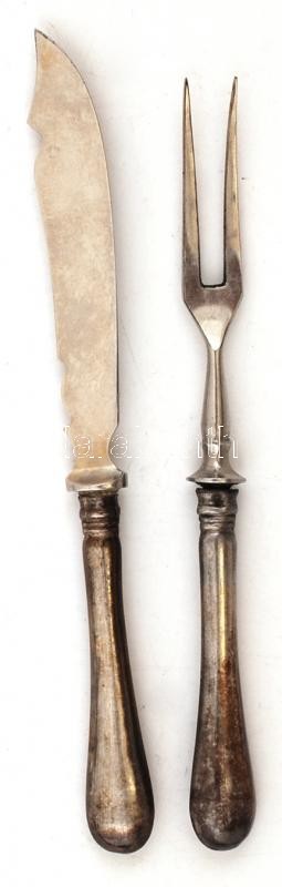 Ezüst(Ag) nyeles kis kés és villa készlet, monogramos díszítéssel, jel...