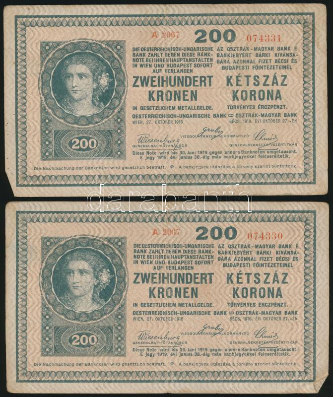 1918. 200K "A 2067" hullámos hátlap (2x) sorszámkövetők T:III