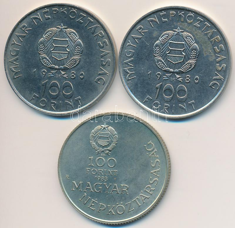 1980. 100Ft "Szovjet-magyar közös űrrepülés" (2x) + 1983. 100Ft "Széchenyi István" T:2