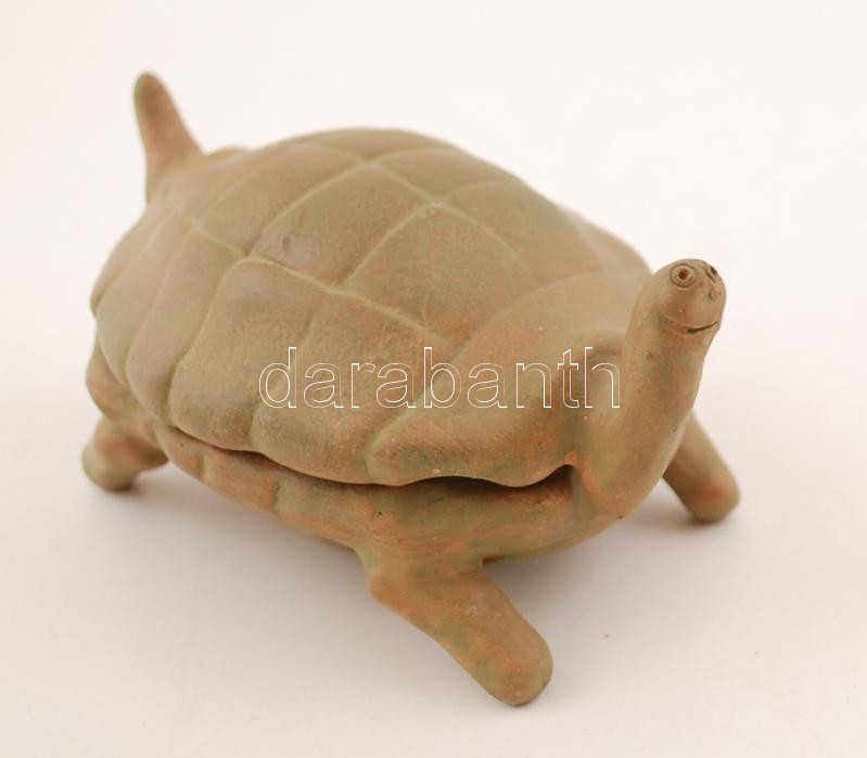 Teknős alakú jópofa asztali tartó, égetett agyag, jelzett, kis kopásny...
