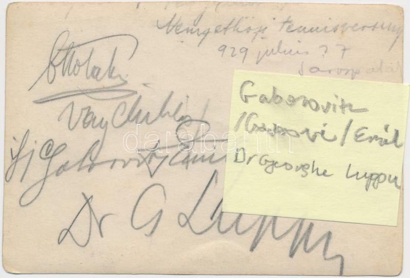 1929 Sárospatak, Nemzetközi teniszverseny, hátoldalon dedikált fotó, G...