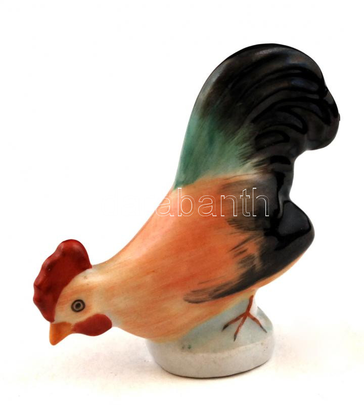 Aquincumi porcelán kakas, kézzel festett, hibátlan, jelzett, m: 5 cm