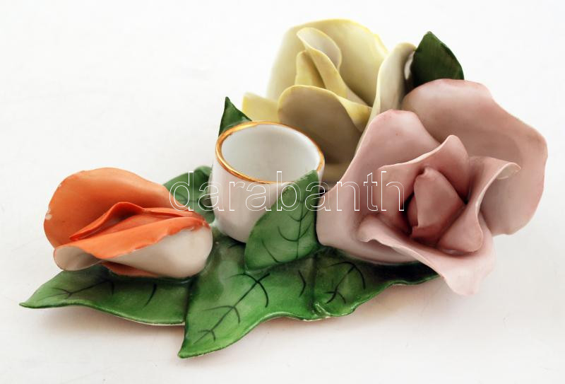Aquincumi rózsákkal díszített porcelán gyertyatartó, kézzel festett, a...