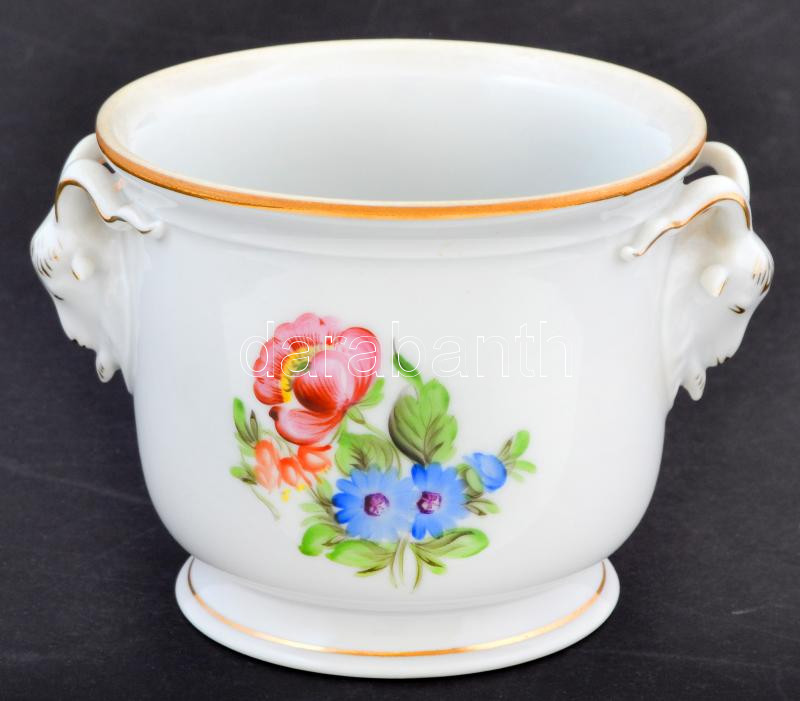Herendi virágmintás pocelán kaspó, kézzel festett, hibátlan, jelzett, ...