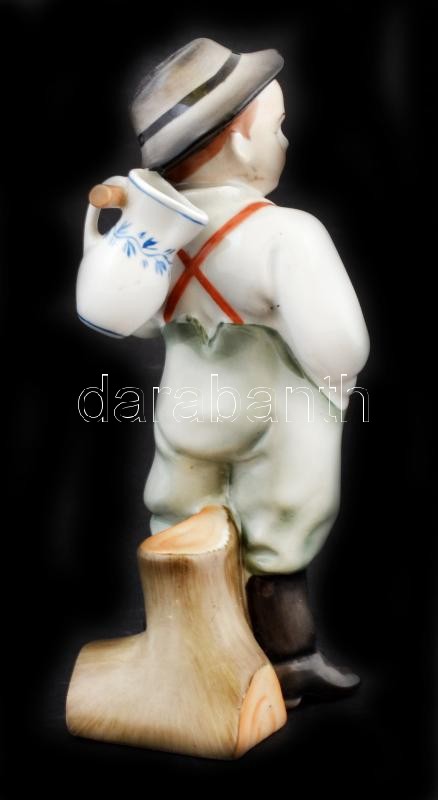 Jelzett kalapos fiú, kézzel festett, apró lepattanással, m:19 cm