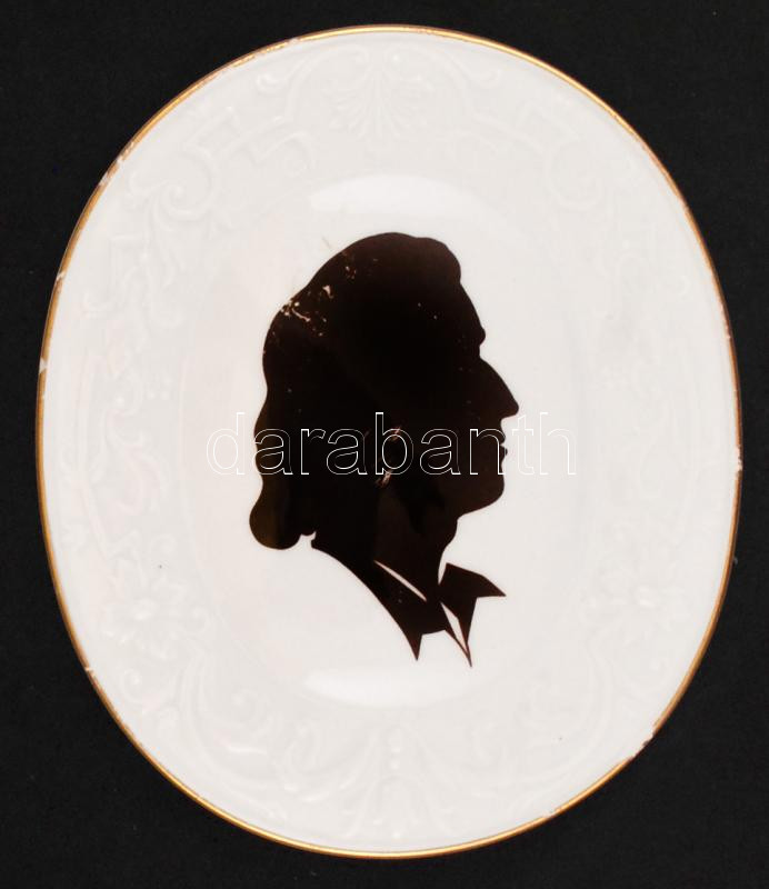 Meisseni fali dísz, in memorian Friedrich von Schiller, 1977, porcelán, jelzett, lepattanással és kopásnyommal,16x14cm