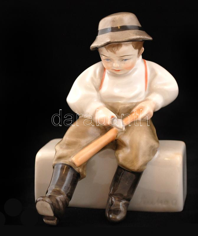 Zsolnay farigcsáló kisfiú, kézzel festett, hibátlan, jelzett (Sinkó), ...