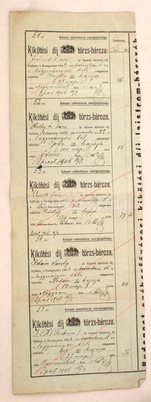 1905 Kikötési díj törzs-bárcza,Budapest székesfőváros vásárigazgatóság...