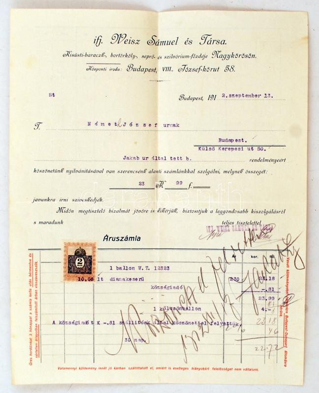 https://www.darabanth.com/en/256-Online-auction/256.0/Other-collectibles/Documents~15/1912-Nagykoros-Weisz-Samuel-palinka-fozdejenek-szamlaja~II1258481