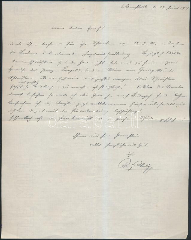 1937 Rajner Fülöp Szász-Coburgi és Gothai herceg saját kézzel írt leve...