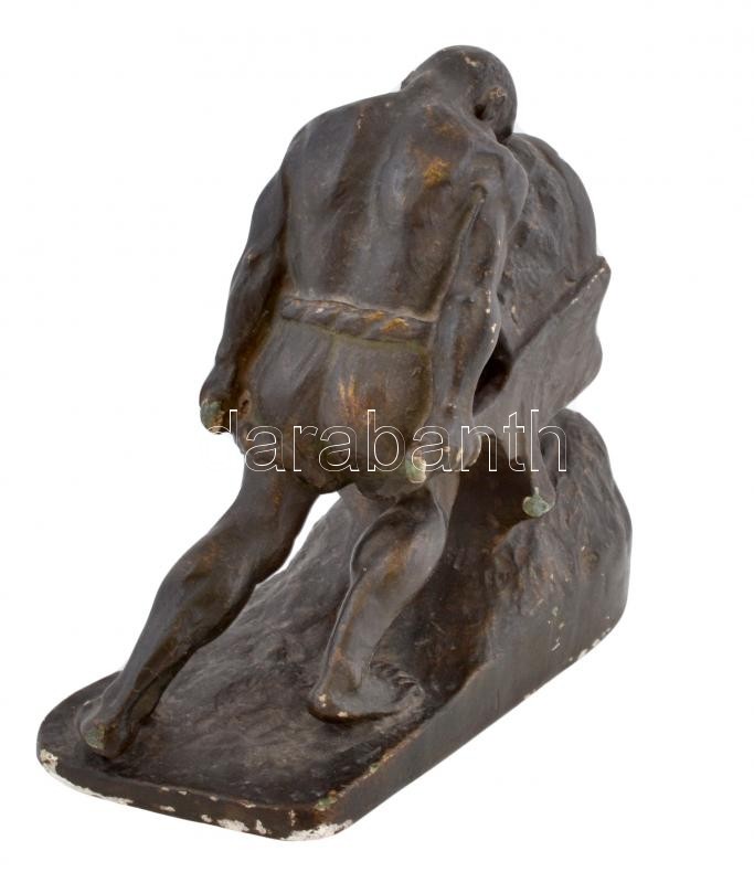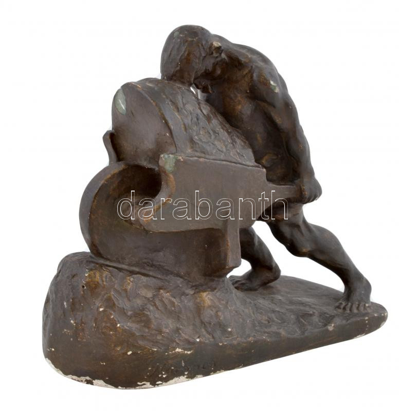 Kormos István (?-?): Kubikos. Festett gipsz, apró hibákkal, jelzett, m...