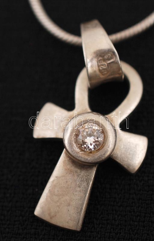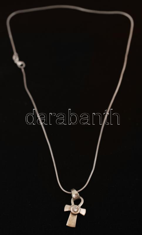 Ezüst nyaklánc pici köves medállal, Ag., jelzett, br., 4,9gr., 40cm / Silver necklace with pendant, marked, br. 4,9gr., 40cm, Ag.